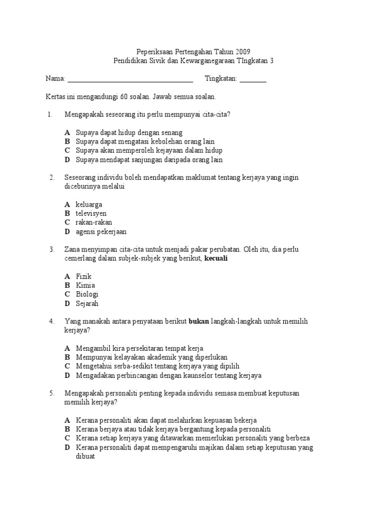 Senarai Peperiksaan Pertengahan Tahun Pendidikan Moral Tingkatan 3 Yang Menarik Khas Untuk Para Guru Perolehi Contoh Resume Cover Letter Curriculum Vitae Terbaik